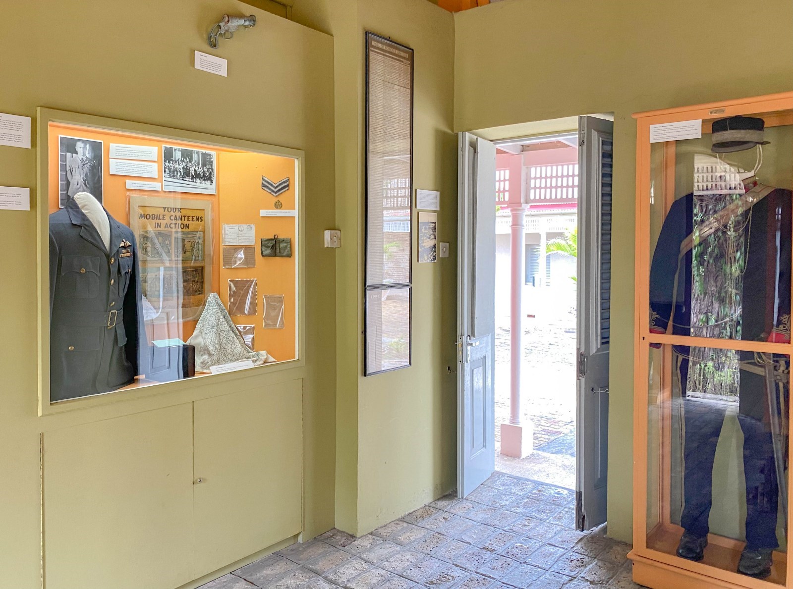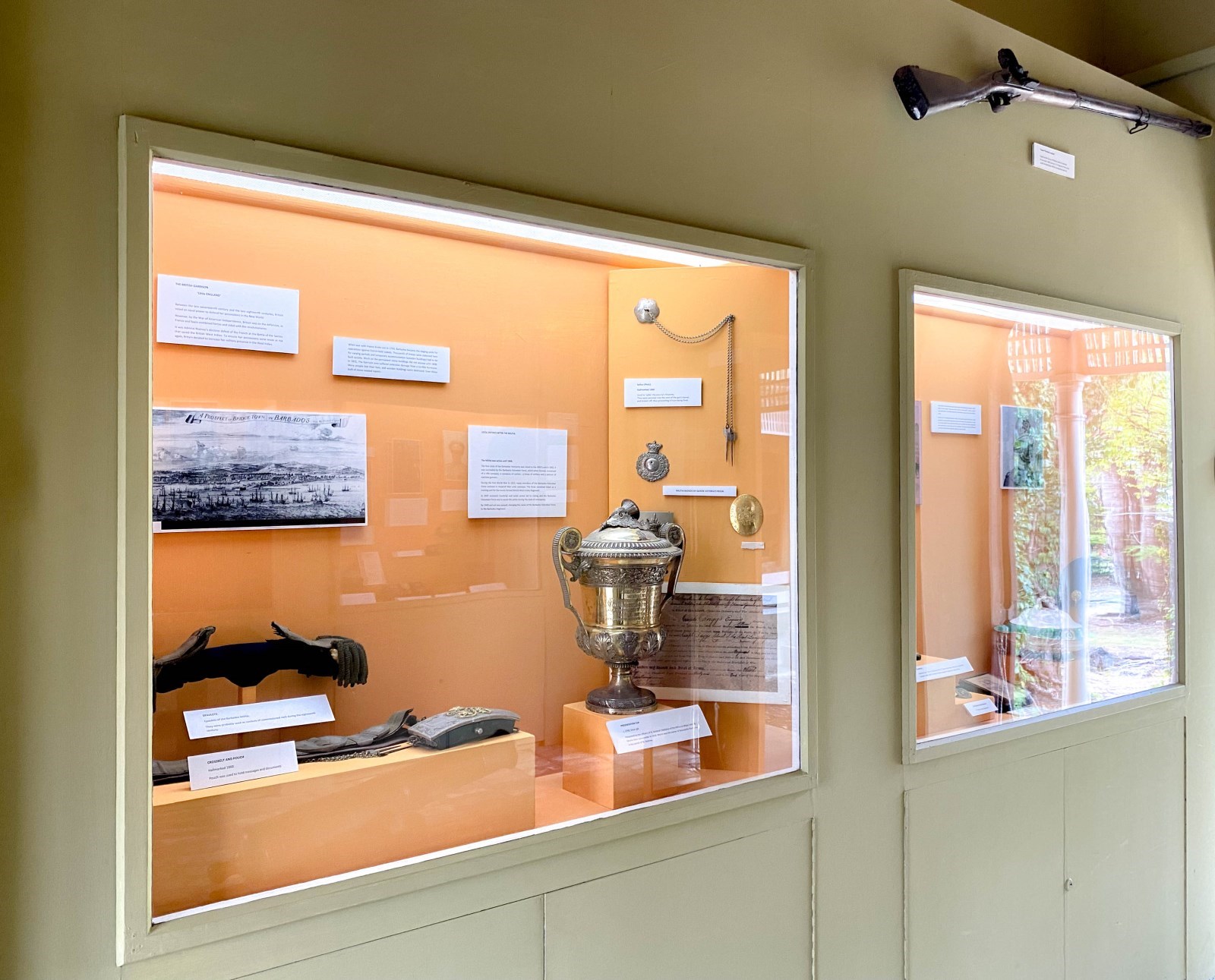 The Military Gallery pays homage to the history of the Garrison and showcases the historical development of the armed forces in Barbados from the 17th century until the end of World War II. The regalia, armaments, medals and photographs displayed in this Gallery visually represent significant military milestones in the island’s history from militias used in the 17th century to the development of the Barbados Defence Force in the 1970s. It also traces the development of the second oldest regiment in the Commonwealth; Barbados’ development in the 18th and 19th centuries into the Headquarters of the British Army and Navy for the entire Caribbean; and the names of those who lost their lives in both World Wars. It also highlights the West India Regiment and the Black lives that were lost in the wars in an attempt to diversify the whitewashing of history related to World War I and II.